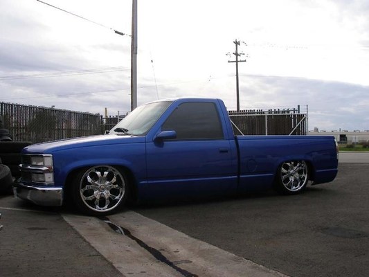 SHAVED TAILGATE, 3RD BRAKE LIGHT, ROLLPAN, CHROME FRONT BUMPER, CLEAR CORNERS, EURO TAILS, MIRRORS, DARK CLOROSEN BLUE PAINT