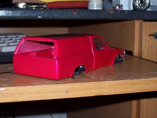 electric pink shaved wiper cowl,door handles,body lines,gas door,tailights,full skin combo.molded the inside of bed.Camper top with shaved windows.
