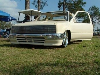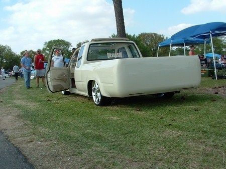 Shaved corner lights, Door Handles, Mirrors, Hood Squirters, Cowl, Molded Tailskin w/ shaved tailights, Gas Door Shaved with filler neck molded in bed. Sprayed with Dupont Harvest Moon Beige Throughout. Polished Phantom Grille, Clear T/S, and rear LED's