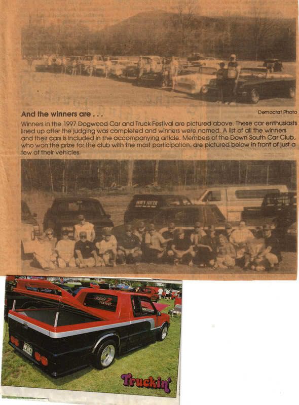 Here are a few of the only pics I have of it. The two large colors are when I first bought her... You cant see how crushed the groudn effects were or how tore up the interior and under the hood was. The Truckin pick is back from a Show in 94 Michael owned it at that time. The news article was my first show....first time for getting a trophy/plaque for anything in my LIFE.